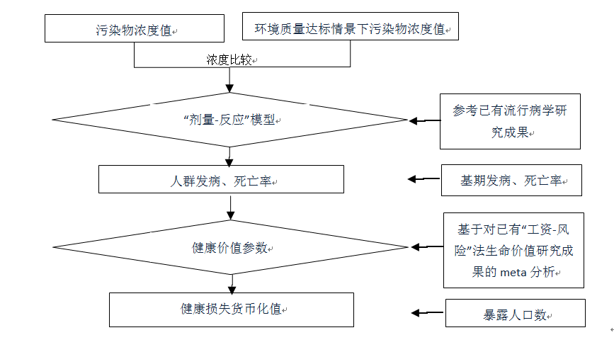 以空气质量达标为基准,评估空气污染超标所致健康损失,具体步骤如下: